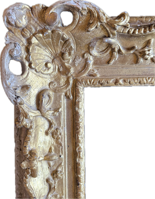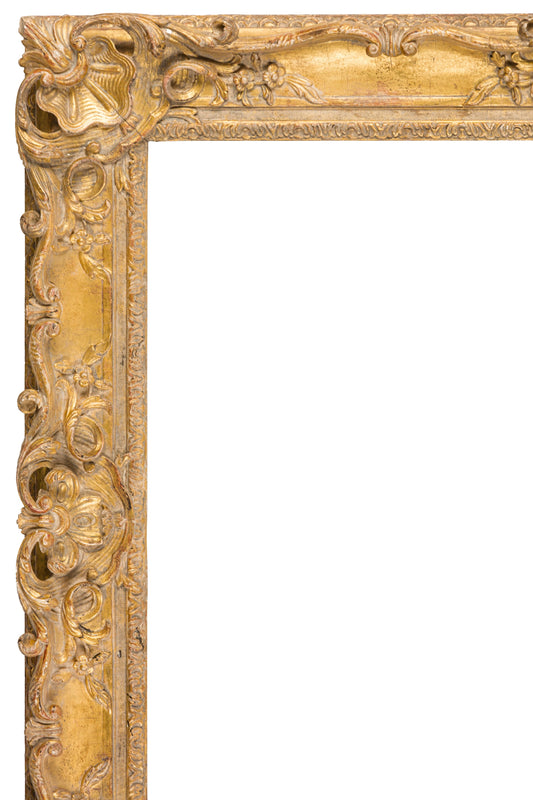 18th Century French School Louis Carved Giltwood Frame with swept centres and corners