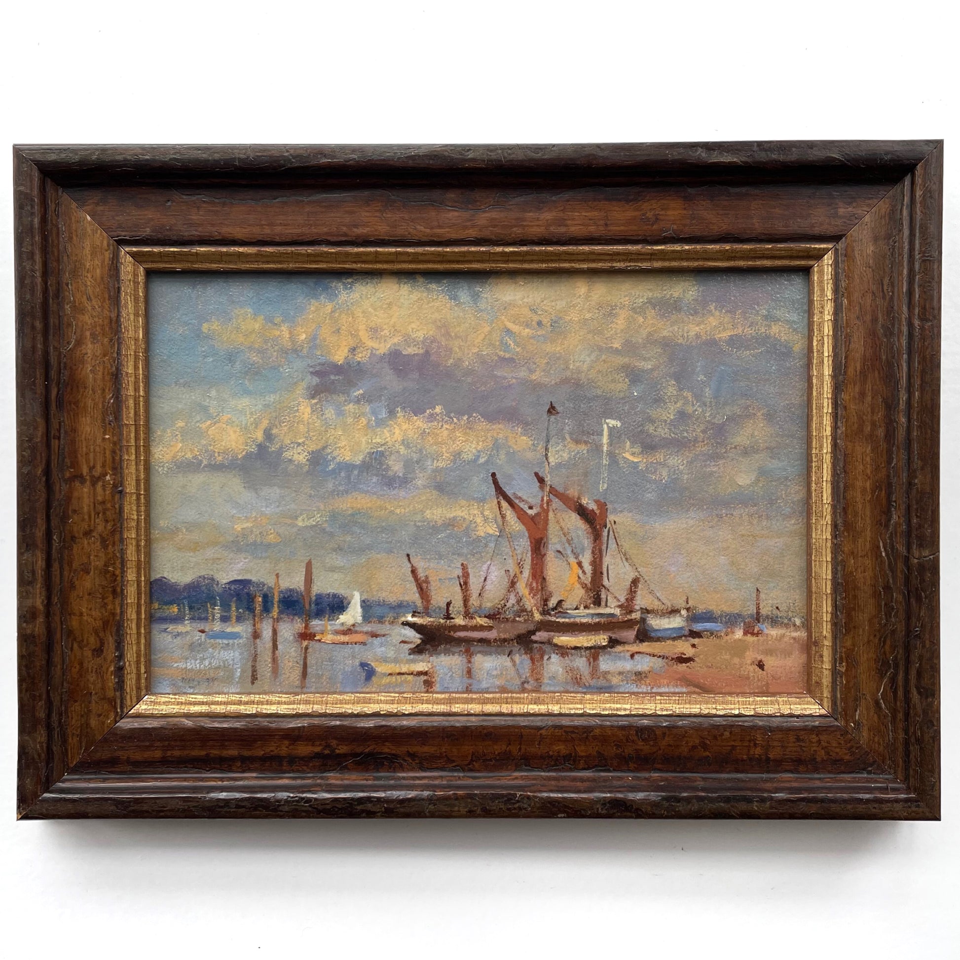Vintage oil painting in a 20th century moulded gilt edge frame