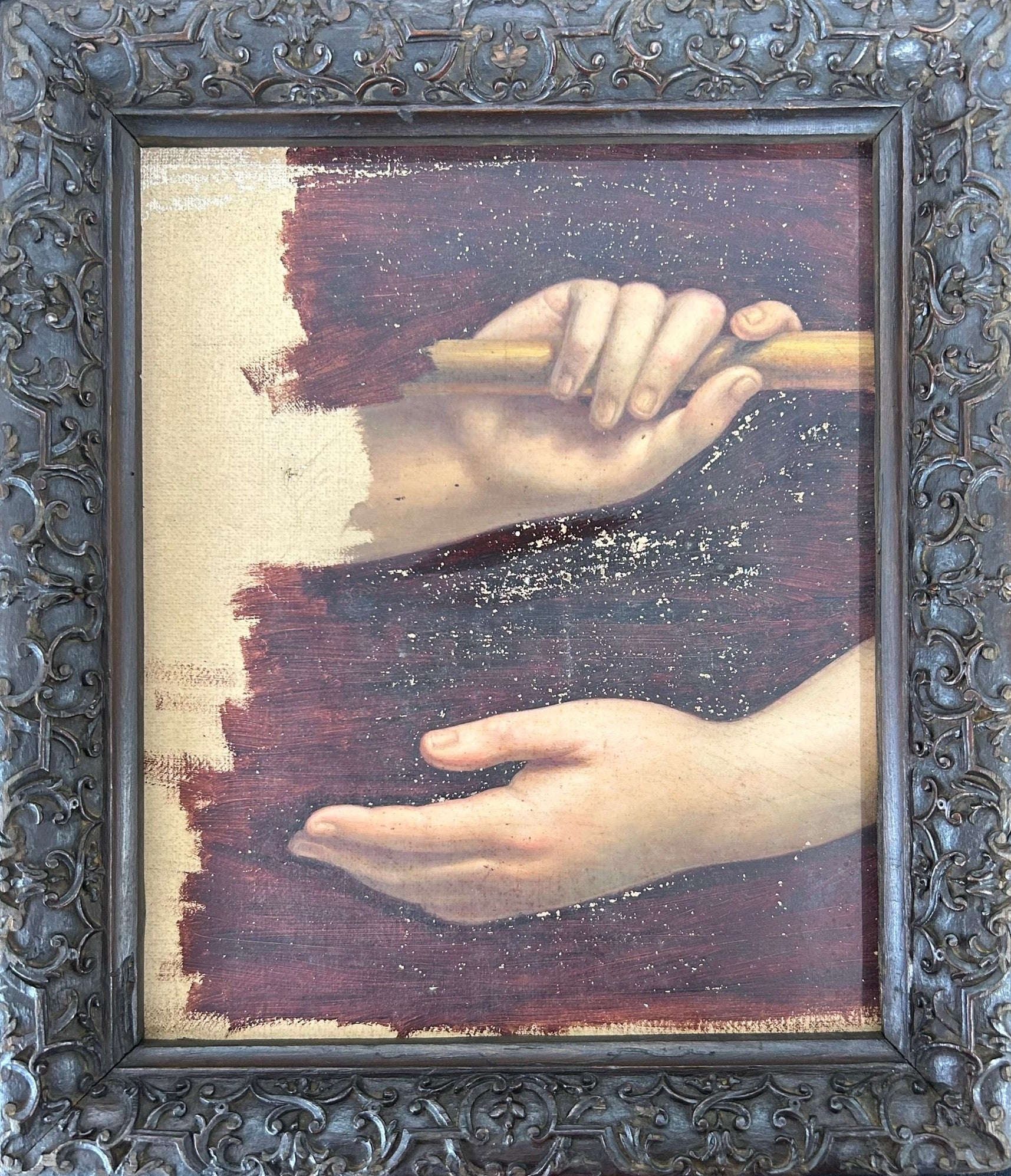 18th century oil on canvas framed in a 19th century English finely carved walnut frame