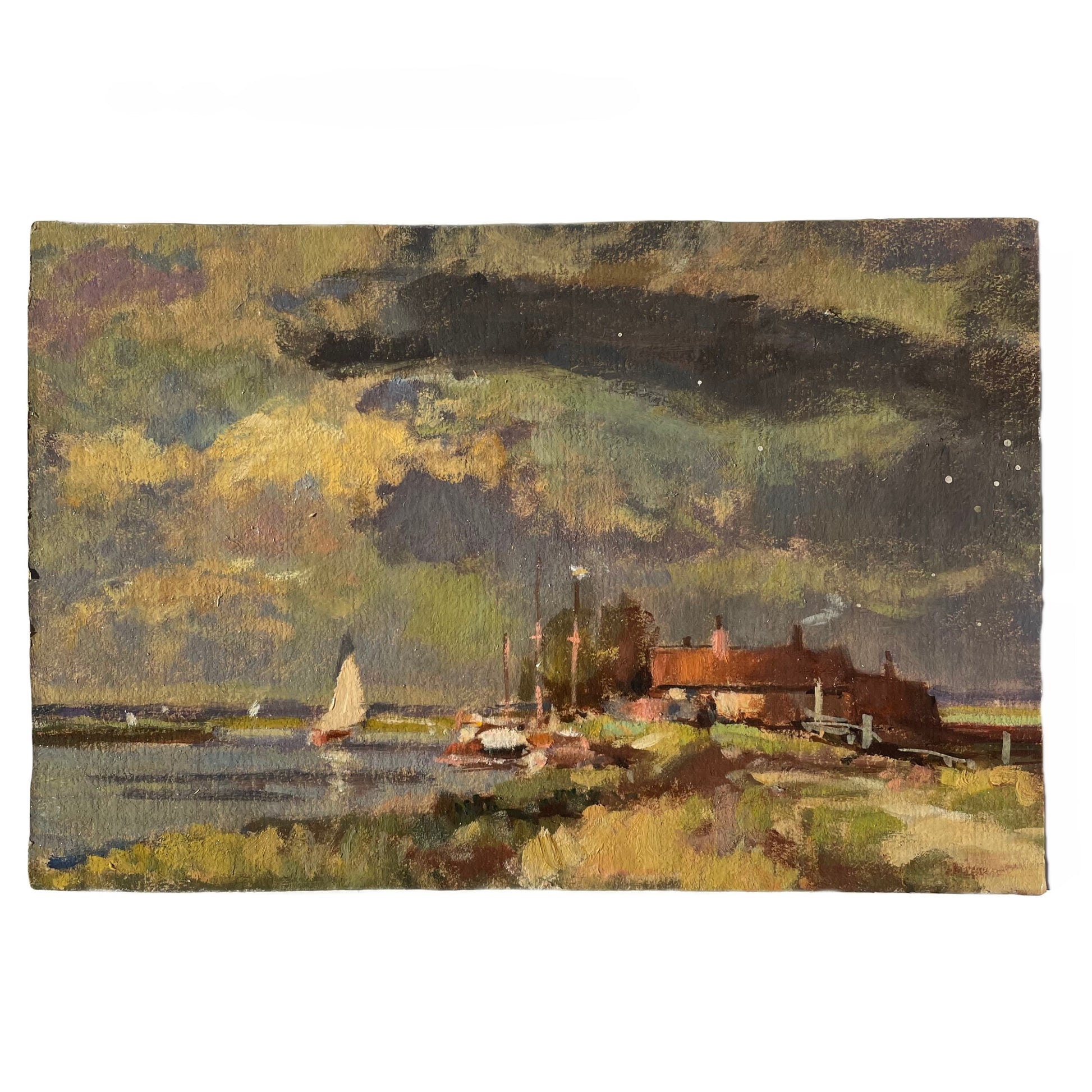Sailing Boat and Cottage Landscape. After Edward Seago