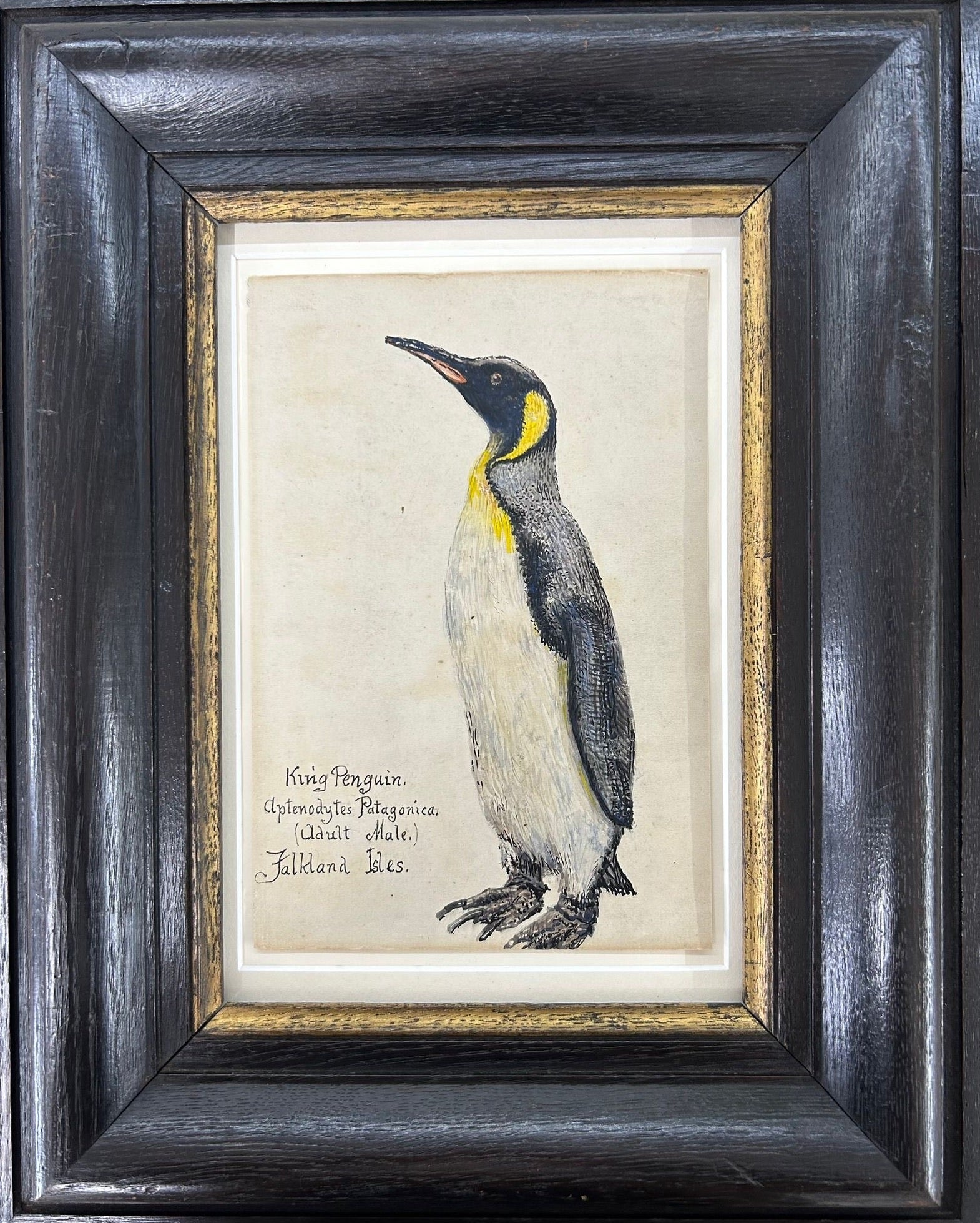 Gouache on paper framed in an English mid 20th century dark wood frame with a gilt slip